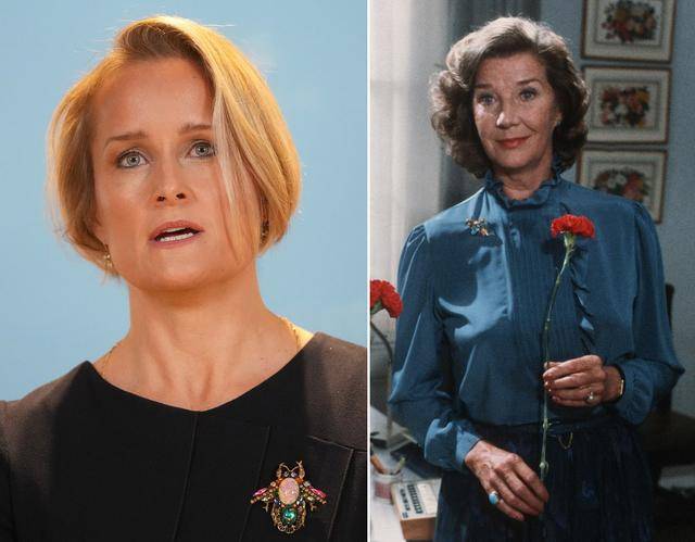 她此前曾承认偏爱 oversized 昆虫造型胸针——她开玩笑说,这种珠宝选择往往会让会议中的人们感到紧张,因为他们怀疑这些配饰是否可能暗中兼作监视设备。