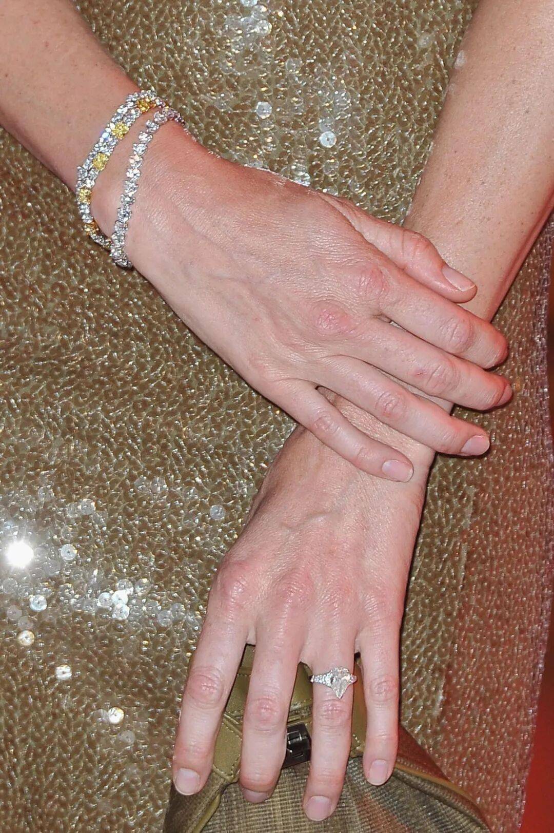 除项链与手链之外,黄钻耳环同样是她造型里的点睛之笔。她曾佩戴一对出自 Graff 格拉夫的黄钻瀑布耳环亮相,流动的垂坠结构进一步延续了她对黄钻的喜爱。