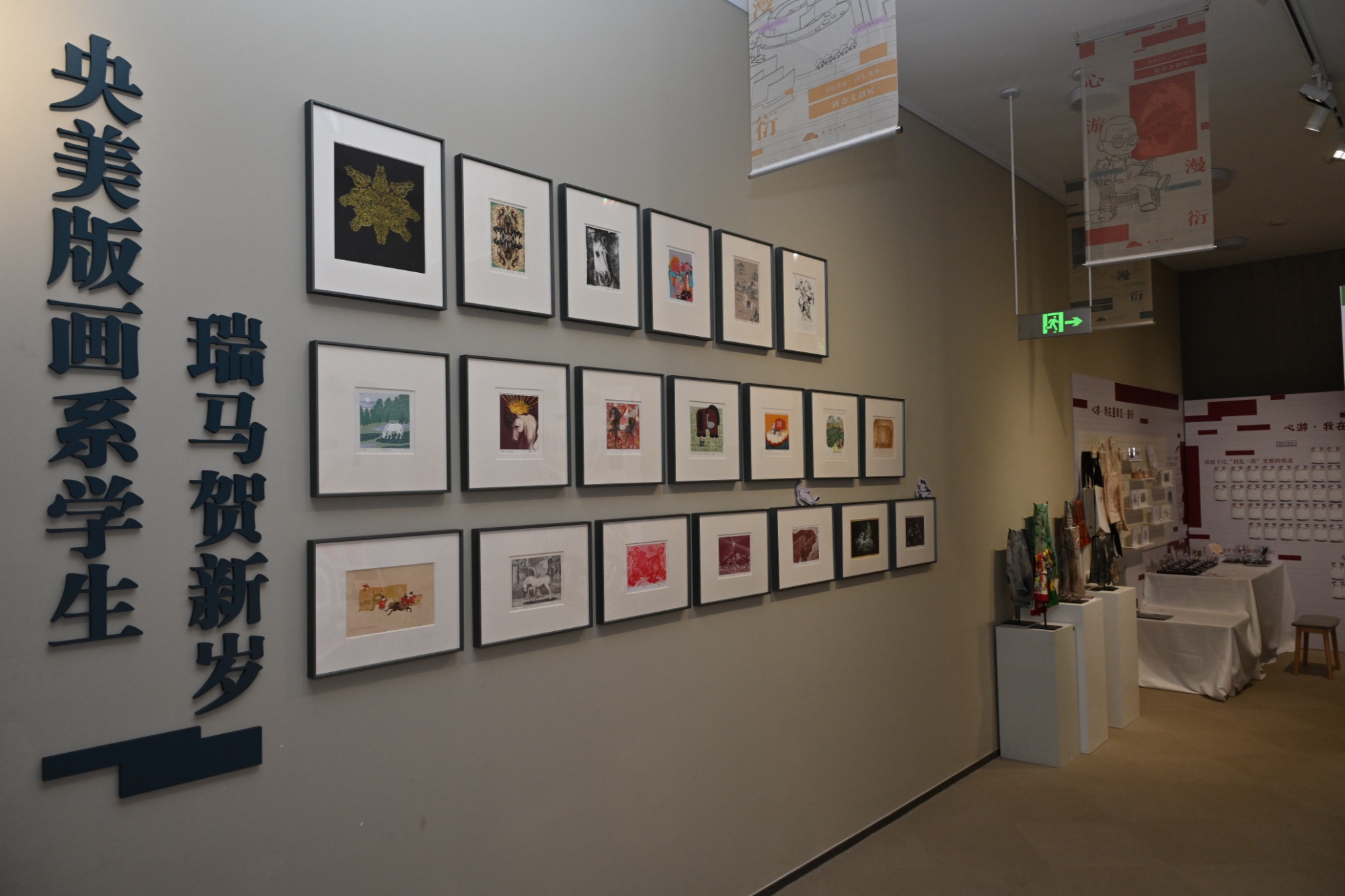 现场“本土艺术家马年贺岁”艺术衍生品同步展出,以“马年画马”为灵感原点,进行了一场跨越媒介的创作实验,生动展现“一匹马,可以有多少种模样”。设计师们创意推出水墨、水彩、蜡笔、数码、卡通等多种形象的马年周边,明信片、“马小姐”帆布袋、“马小姐”红包、书衣等产品琳琅满目。青年画家水彩演绎清透诗意,马鬃在色彩洇染中飘扬,多了几分现代的诗意与轻盈;蜡笔童趣天真烂漫,用儿童的视角与笔触质感,描绘一匹多彩可爱的马;数码重构未来想象,像素与线条的交织,传统笔墨在数字世界里获得新生;卡通再造亲切陪伴,“马小姐”形象应运而生,让经典画作变得可亲可爱。