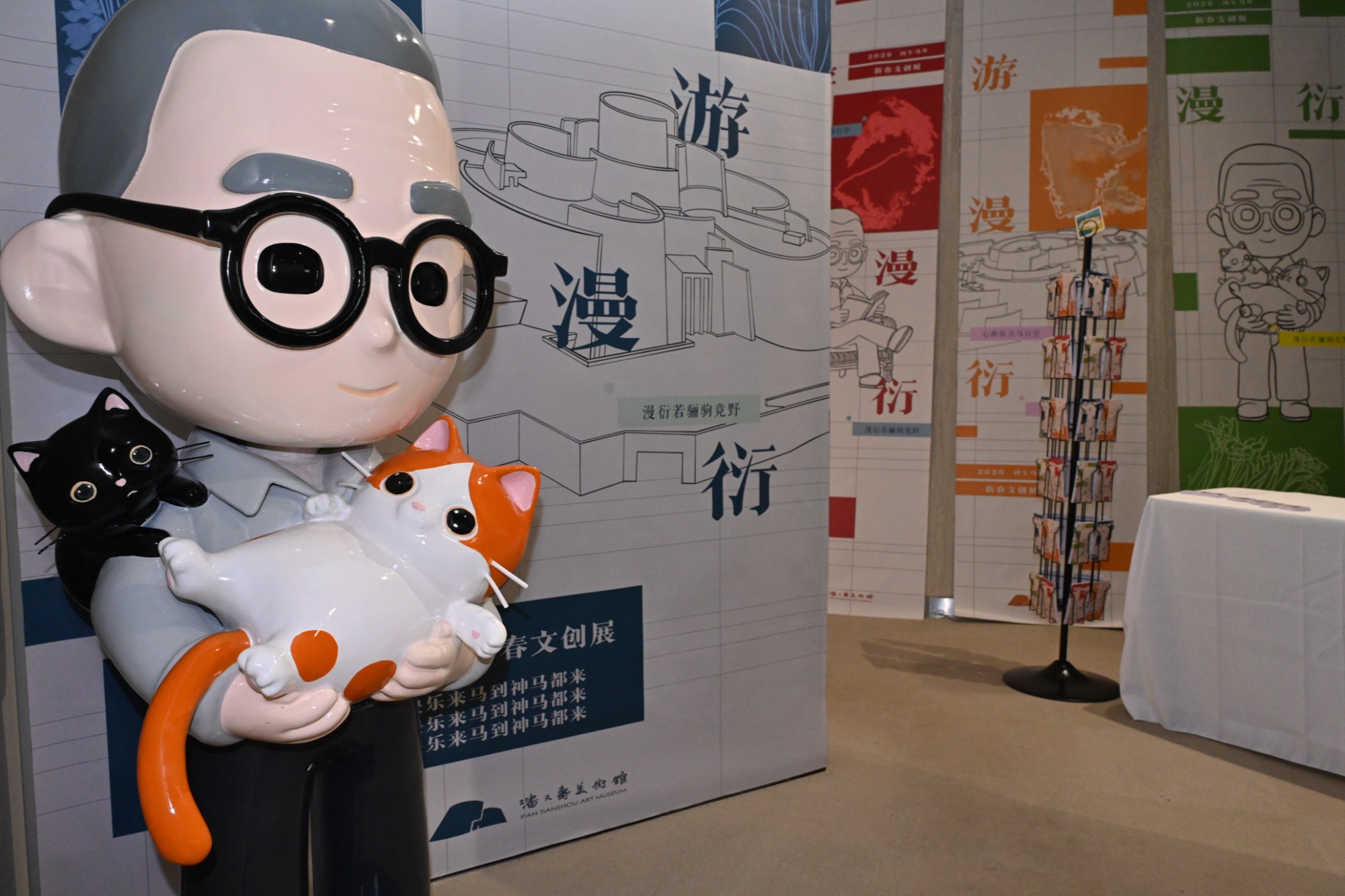 除马年主题文创外,潘天寿美术馆还首度将艺术大师IP潮玩化,推出“潘天寿·多面人生”艺术人偶盲盒系列,设计“书倚独观、挥毫淋漓、俯身写意、抱猫观世、黄山观云”五款大师日常人偶,展现一个有温度、有生活气息的潘天寿。同时,还选取潘天寿先生笔下花鸟虫鱼、猫蛙果菇等生物,以及宁海的几处代表性地标建筑,研发设计了卡包、杯垫等产品,让东方美学的清雅悄然浸润现代生活的缝隙。