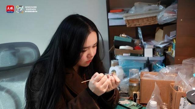 “黔蝶” 系列胸针以拟旖斑蝶为设计灵感,巧妙融合点翠技法与贵州银饰锻造工艺,古朴银质与明艳翠羽相映成趣,使作品既生动又和谐。月月不拘一格的创作风格,很快吸引海外市场目光。她透露,已收到来自墨西哥地方城市的合作邀请,计划以贵州非遗技艺为基础,联名设计亡灵节主题文创产品,让东方工艺与拉美文化碰撞出新火花。