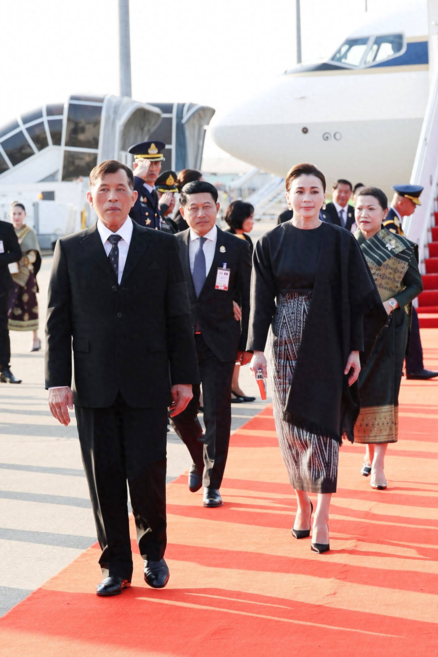 此次访问打破了外界对王室外交的刻板认知,泰王亲自驾机、苏提达王后以副驾驶身份协同执飞的“硬核操作”,搭配王后全程惊艳的穿搭与极具感染力的微笑,不仅展现了泰国王室的独特风采,更以服饰为媒,实现了泰国文化的柔性输出,搭建起泰老两国文化交融的视觉桥梁。“优雅的力量从不逊色于锋芒,真正的魅力,是实力与气质的双向奔赴。”