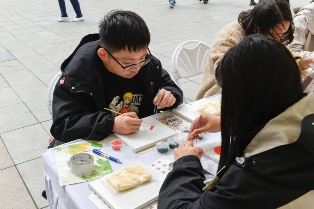 非遗体验区成为中外文化交融的核心阵地。盘扣胸针、点翠、刺绣、中国结、掐丝珐琅、缠花、剪纸、中药香囊、木版水印(生肖年画)、传统发簪制作、手工布艺、纸浆画、泥塑紫砂摆件、糖画等14项非遗体验项目琳琅满目,令人目不暇接。