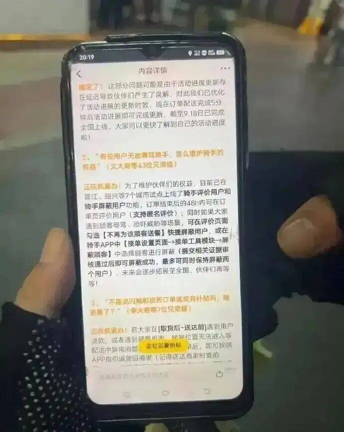 美团在多个城市试点上线骑手评价用户和骑手屏蔽用户功能,赋予骑手屏蔽用户的权限。